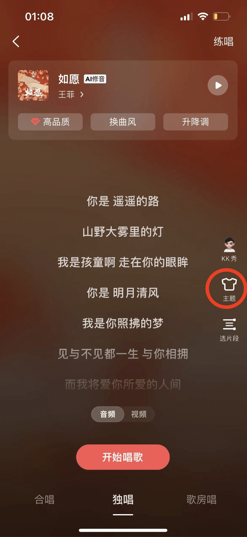 智能音效是根据用户演唱时人声的音高音色与伴奏的演唱速度实时计算生成的专属调音方案。
