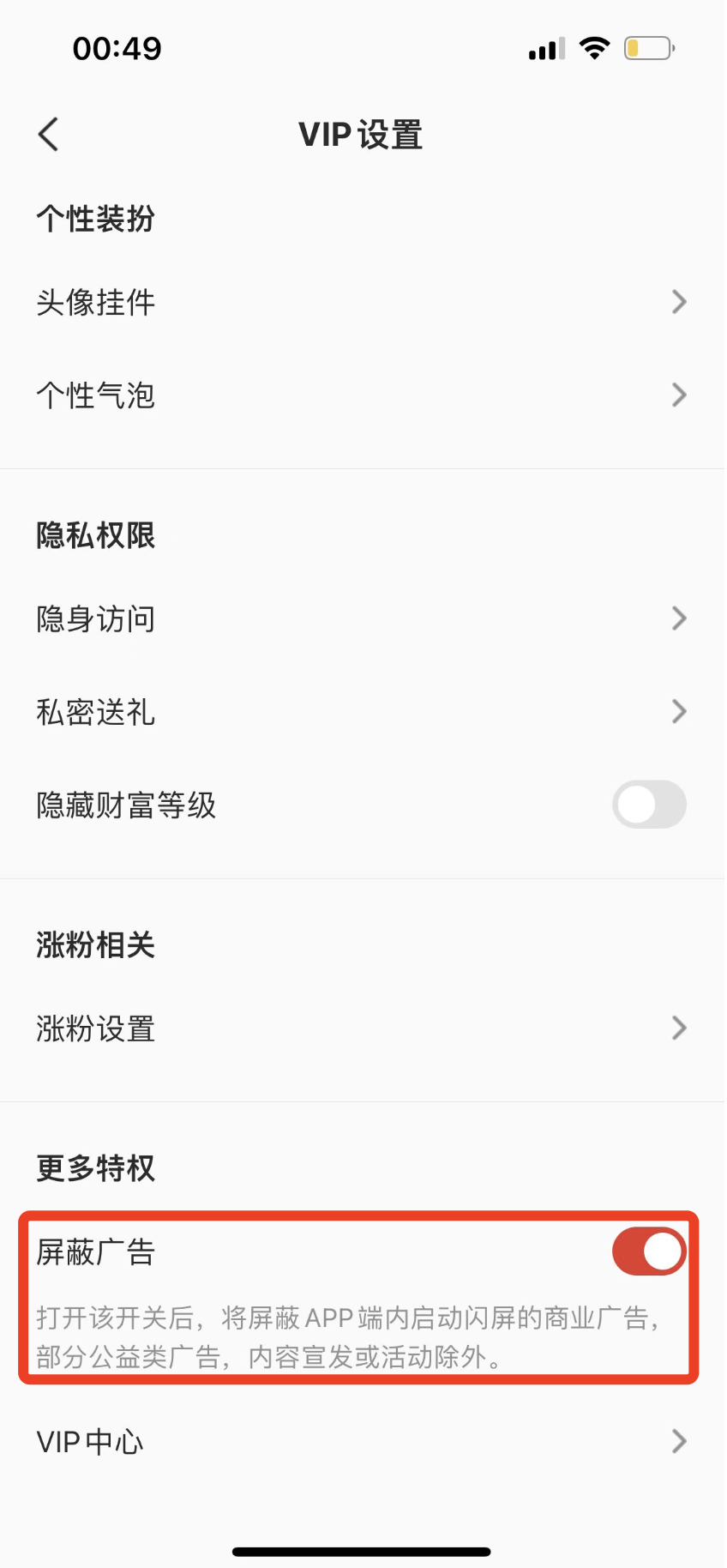 平台支持一定程度地减免VIP用户在使用产品时接触到的广告内容,但不会完全消除所有广告和商业信息。VIP用户可在VIP设置页内开启屏蔽广告开关。