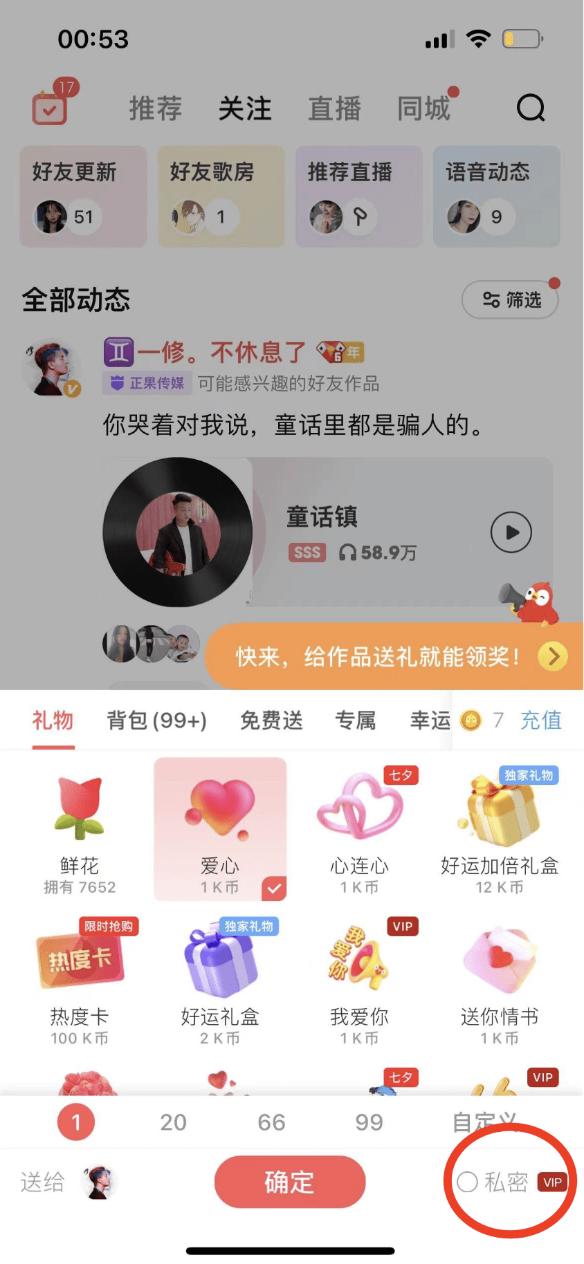 设置私密送礼之后,送礼信息仅对送礼和收礼双方可见,对任何第三方都是“匿名”信息。私密状态覆盖全站场景,如礼物飘屏、礼物榜、守护榜等。私密状态仅在VIP有效期内生效,VIP过期后私密将转为公开状态,历史私密送礼信息也将转为公开。