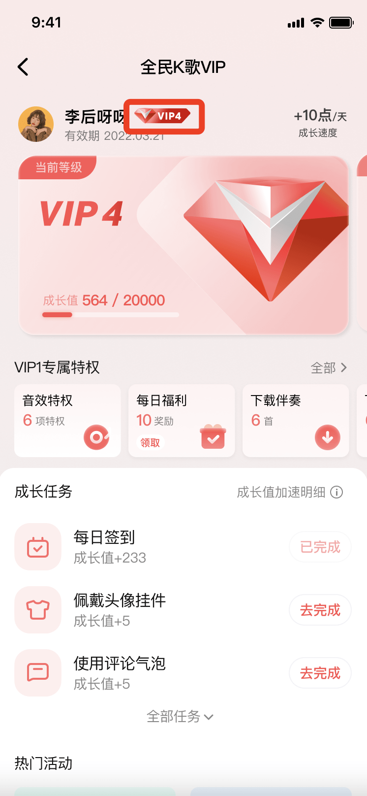VIP用户在任务中心完成每日登录领鲜花任务可获得奖励加成,体验VIP可额外领取20奖励。
