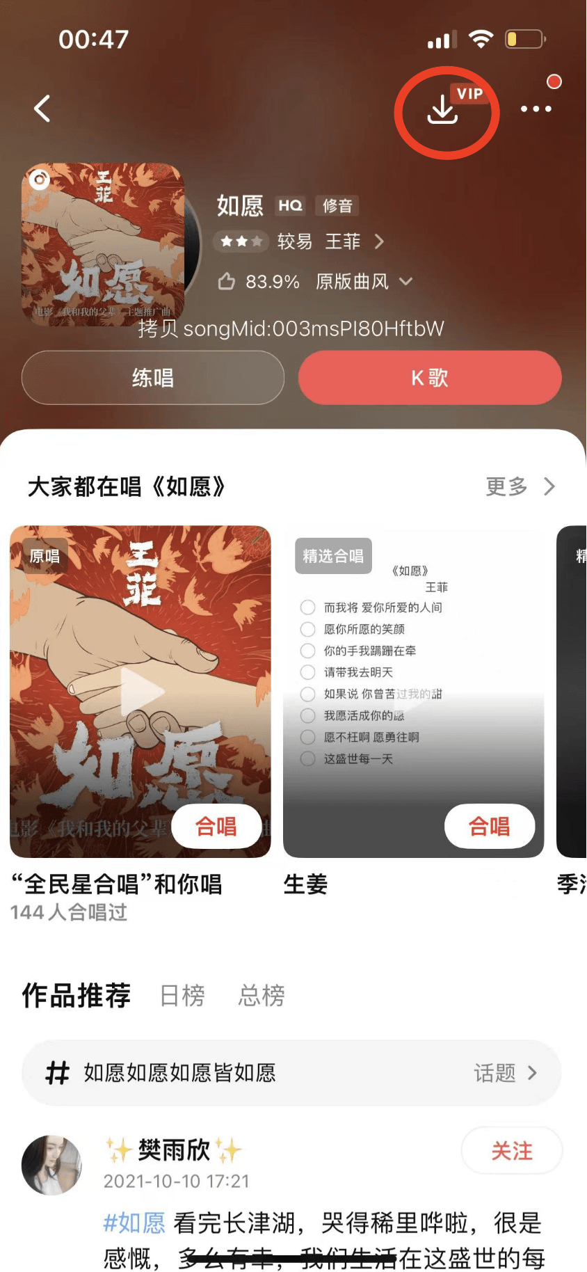 平台支持VIP用户下载部分伴奏音频文件本地设备进行播放。下载的伴奏音频仅限在个人的本地移动设备上供个人进行欣赏性使用,不得通过爬虫软件等程序或方式进行批量下载。全民K歌有权随时修改、变更或终止此特权服务的全部或部分范围,同时,任何修改、变更或终止该赠送的服务不会产生任何退费情況。体验VIP享1首/月。