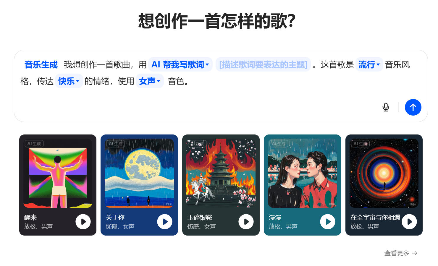 2. 功能组合使用,效率翻倍组合 1:帮我写作(写短视频文案)→ 图像生成(配文案相关图片)→ 音乐生成(加背景音),一套搞定短视频素材。