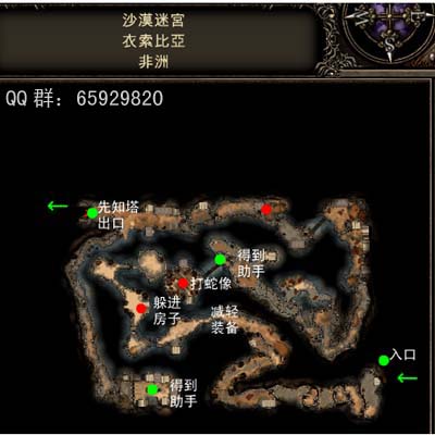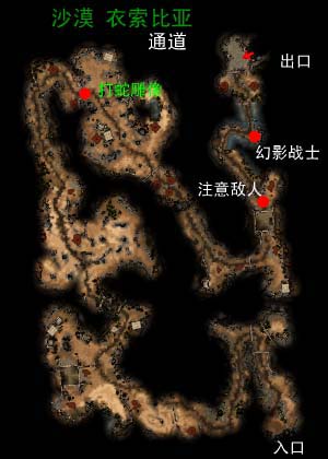 入口沙漠迷宫,出口先知塔,敌人较多时躲进附件的房子里!本关可以的到8~9个助手,中断有一个鬼火楼梯,检验一下手的灵活度哈哈!(我过了3次才成功!)