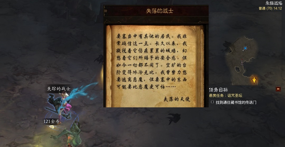 另外,暗黑3有个日志成就叫做失踪的战士,这位失踪的战士的遗体在混沌要塞外面的永恒战场被发现,随身的日志向世人揭示了混沌要塞内部发生的一些事情。