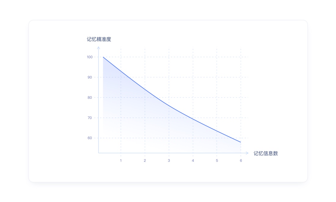 二、米勒定律(7±2法则)7±2法则是1956年由 乔治·米勒 所提出的,根据乔治·米勒的研究,人的短时记忆能力广度为5-9个信息块,超过了该范围就容易出错。这说明大脑短时记忆容量约为“7”,并在7+2与7-2之间浮动,因此把这个记忆容量规律称为“7±2法则”。