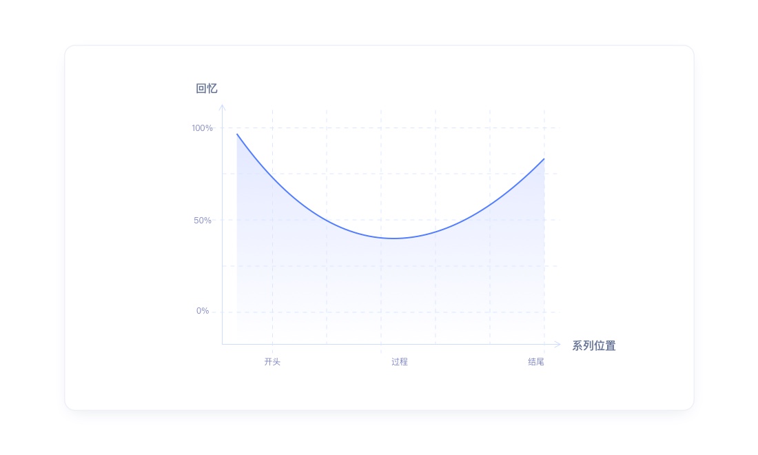 关于记忆还存在一种影响因素,一个物体在序列中的位置也影响我们对它的记忆。