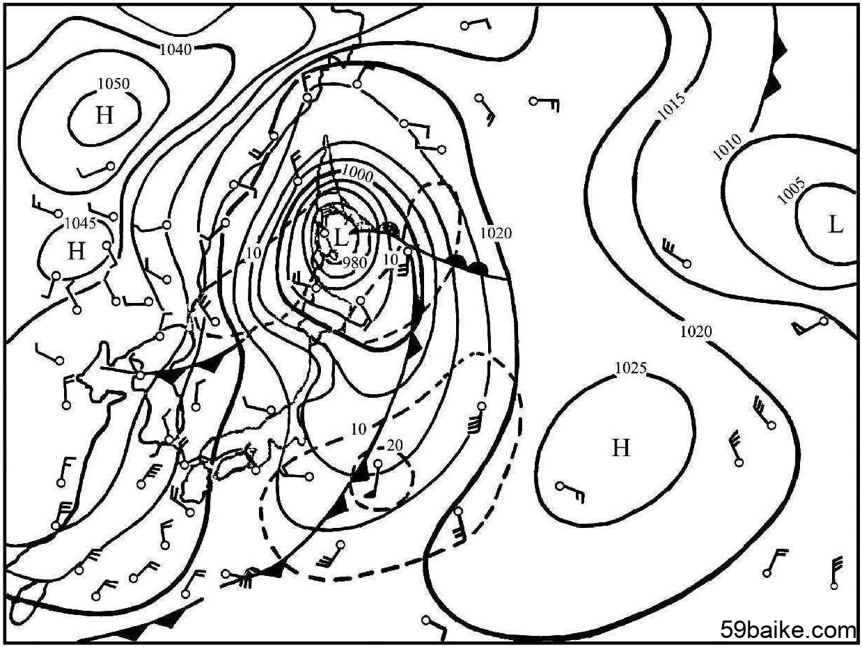 时刻200 hPa高度上急流平均位置的关系图(改绘自李长青和丁一汇,1989) 根据以上大尺度环境条件的分析,李长青和丁一汇(1989)还选择了1983年1月6日~9日一个具有代表性的爆发性气旋个例进行了详细的研究。该爆发性气旋的形成和发展过程大体可分为三个阶段:1月6日~7日是初始阶段,弱小涡旋位于渤海上空过境冷锋和北部冷锋之间地带。1月8日是爆发期,涡旋向东北方向移动,同时北部冷锋从其西北侧侵入,气旋爆发性增强,在24小时内降压达33.9 hPa。爆发前后气旋附近都有大风区存在,爆发期大风区的范围及强度较大,最大风速值在20 m/s以上。1月9日是成熟期,气旋中心气压稳定并开始升高,该气旋发生在200 hPa急流出口区北侧,该区存在明显的高空辐散场,最大辐散值为6.1×10-5s-1。 初期气旋位于高空辐合区,高空500 hPa短波槽东移为“气象炸弹”的形成带来了冷空气,而比正常情况偏北的海上副热带高压西侧的暖平流带来了暖空气,从而形成这一地区强的大气斜压带,气旋中心位于斜压带内。同时副热带高压西北侧700 hPa或850 hPa中的空气非常潮湿,且与南风区重合,有利于水汽的向北输送,为气旋爆发性增强提供了充沛的水汽条件。计算结果表明有位势不稳定区存在于气旋的东侧和东北侧中低层,为气旋的发展提供了对流发展条件。