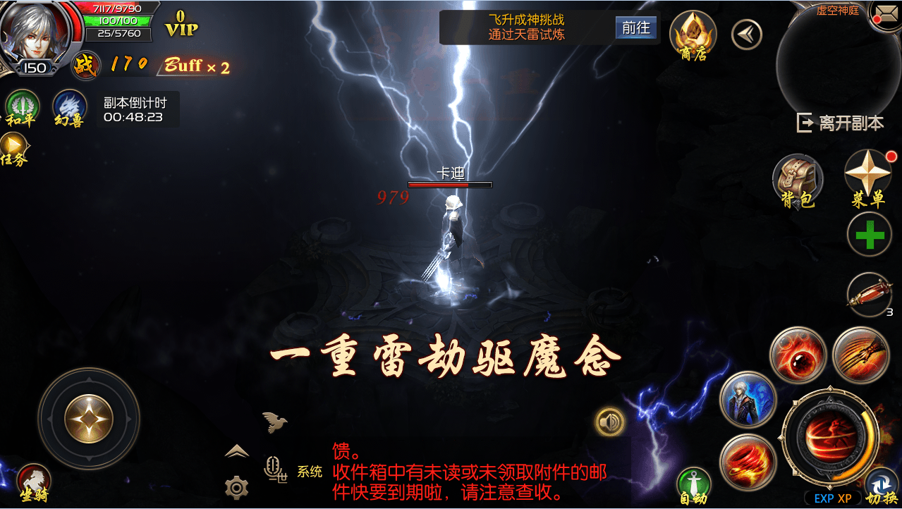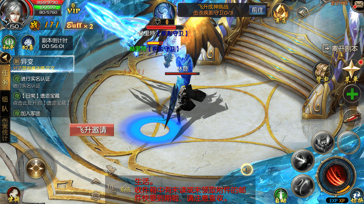 飞升挑战限时30分钟,超时则算作挑战失败,且飞升挑战途中遍布凶险,步步危机,请携带足够的生命恢复类药剂!