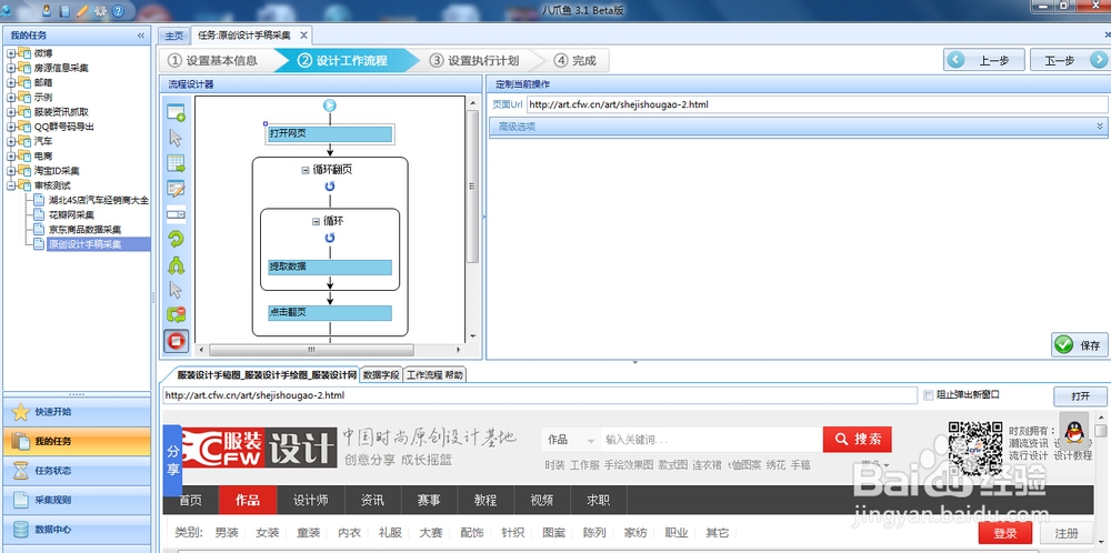 打开八爪鱼采集器的客户端,登陆软件之后新建一个任务,打开你要采集的网站地址。这里我自己示范的原创设计手稿的采集。