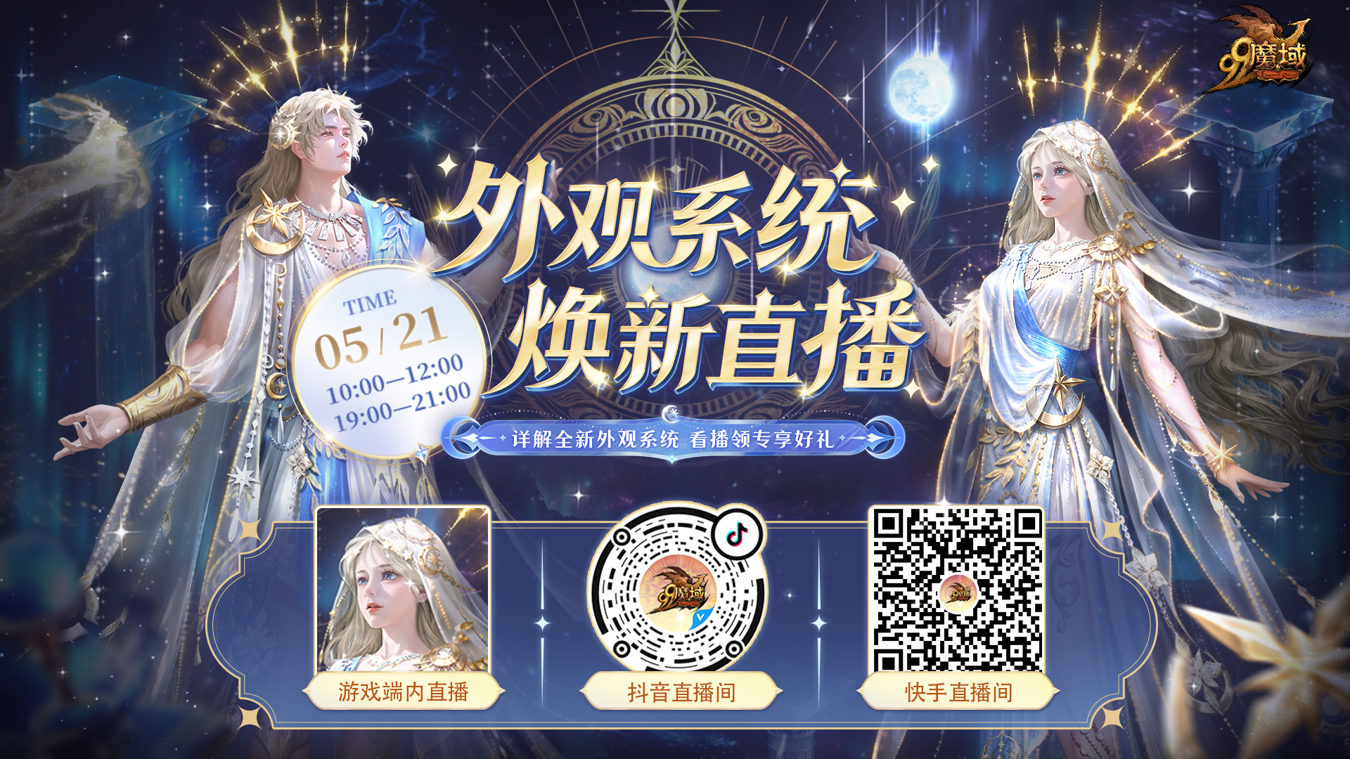 5月21日当天早10点至12点、晚19点至21点,魔域官方全平台同步直播,为您详解全新外观系统,看播还能领取专享好礼,直播福袋最高送8888点魔石!