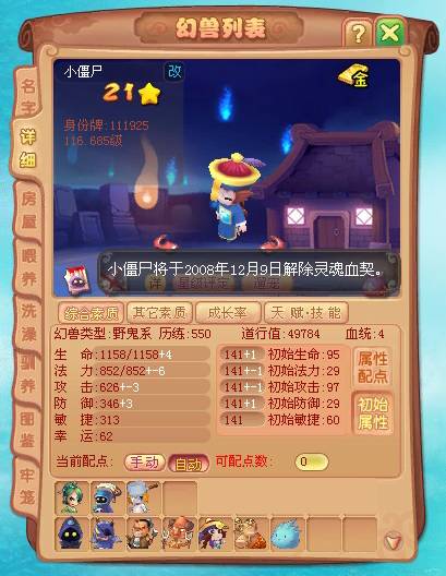 打开幻兽详细面板, 鼠标移到