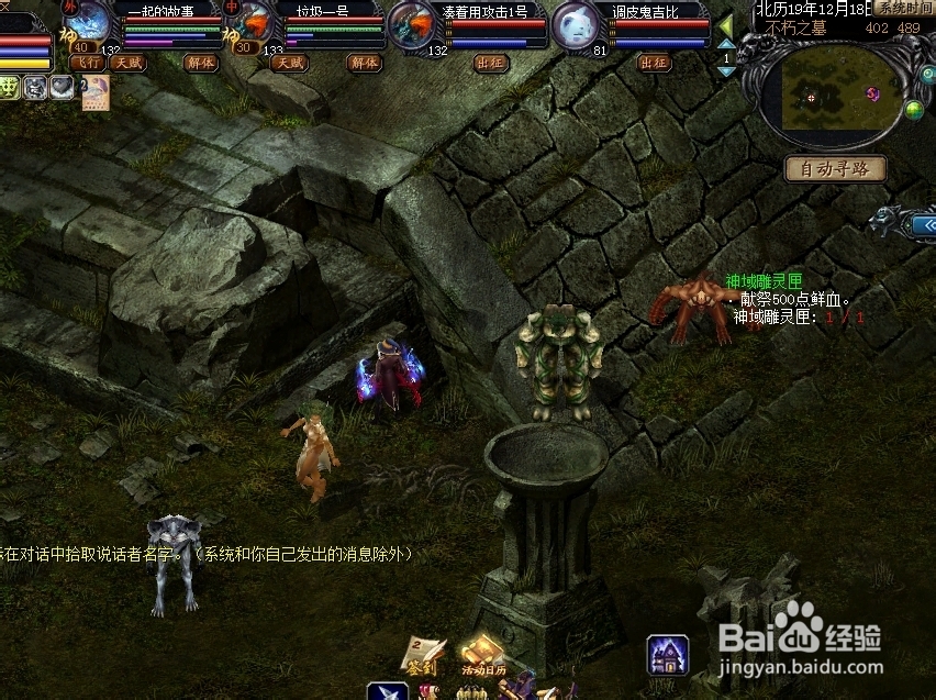 而在路上见到的那些长老当boss出来的时候他们就会被激活,但是这些长老也在boss死后他们也会消失,所以可以不打,主要是在这四个怪最后一个死的时候把boss拉出来,与长老分开就行。建议点一次怪杀一次,最后的怪拉到上面杀不要在原地,