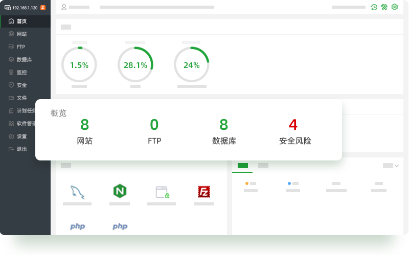 宝塔Windows面板是提升运维效率的服务器管理软件,支持一键WNMP/WAMP/IIS/SQLServer/集群/监控/网站/FTP/数据库/JAVA/PM2等100多项服务器管理功能。