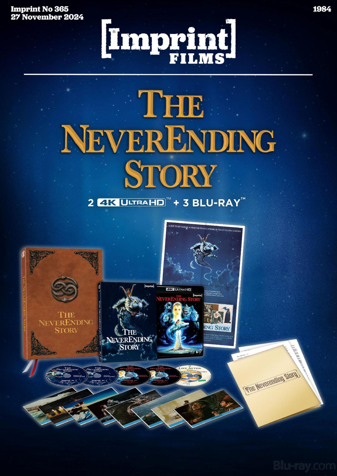 两张BD-100规格的UHD正片碟分别呈现Imprint独家完成的北美版正片4K修复以及德国之前完成的德国版4K修复正片,两者都有HDR10呈现配以DTS-HD MA 5.1音轨,Imprint独家北美版额外携带杜比视界。接下来两张BD碟分别为这两个版本的普通蓝光规格呈现,其中北美版携带花絮内容,包含了导演沃尔夫冈·彼德森主讲的旧评论音轨和电影学家Paul M. Sammon全新主讲的评论音轨、纪录片影人丽萨·道恩斯分析影片从原著改编创作经历的特辑、分解片中特效的特辑、音乐学家Daniel Schweiger讲述本片配乐创作的特辑、华纳三十周年美版蓝光时制作的25分钟回顾特辑、1984年宣传本片制作的57分钟幕后纪录片以及2012年德国自家对德国版正片进行糟糕高清修复时做的17分钟回顾特辑与9分钟修复特辑内容。