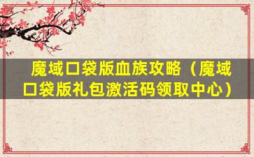 血族是魔域口袋版中一位近战物理职业,魔域怀旧双防拥有强大的爆发伤害和生存能力。