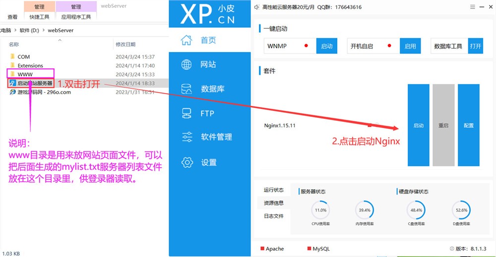 2、双击打开D:\webServer\启动网站服务器,然后启动Nginx服务
