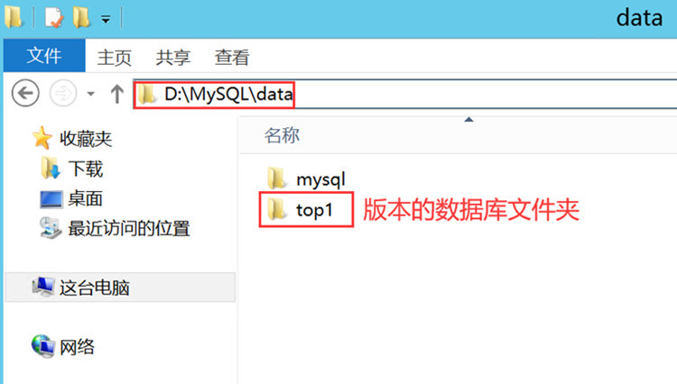 2、将魔域版本的数据库(一般是名为my1或者top1的文件夹),上传到D:\MySQL\data目录,如下图: