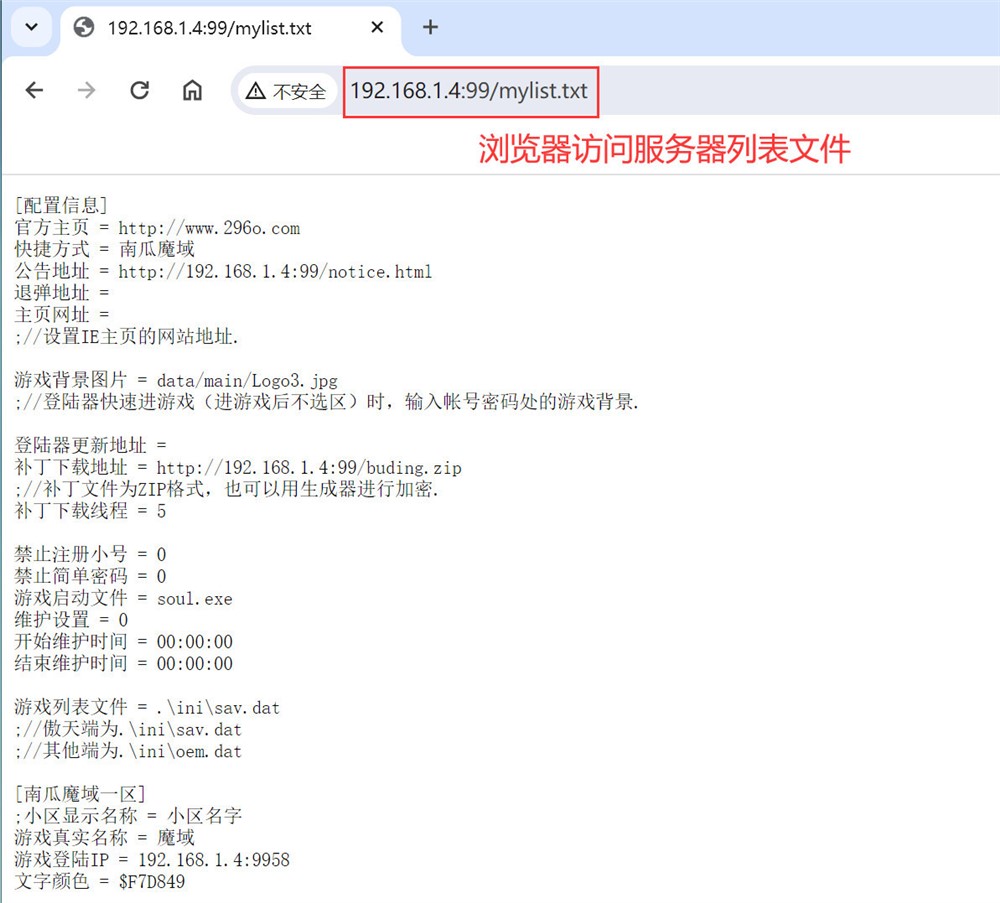 浏览器能正确访问到mylist.txt文件,说明你的web网站和登录器配置都是正确的。