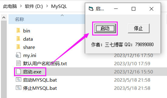 3、双击D:\MySQL\启动.exe,启动数据库