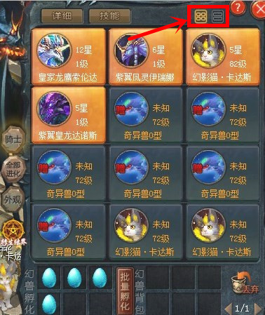 而原先的“列表模式”也可正常使用,玩家可以通过幻兽界面右上方的按钮,在“列表模式”、“多幻兽模式”中自由切换。