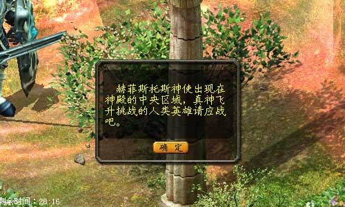 在力量神殿里,你将接受飞升挑战的第一关考验,赫菲斯托斯神仆·卡隆会告诉你详细的挑战内容和形式。