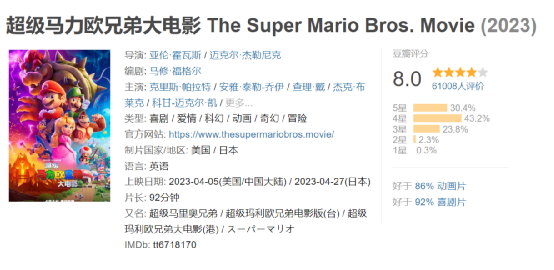 游戏改编天花板,国内观众不买账经历过1993年真人版《超级马里奥兄弟》的黑历史之后,任天堂几十年来一直不敢轻易尝试对马里奥这一IP的电影改编。就IP影响力而言,马里奥可谓游戏界最具影响力的IP,没有之一。而今年的《超级马力欧兄弟大电影》一跃成为最成功的游改电影,也算是多年来的厚积薄发了。