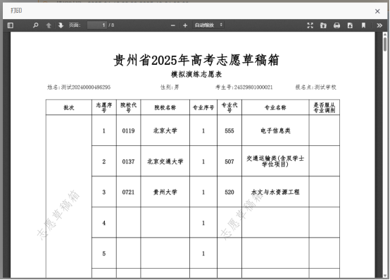 以上截图为“志愿填报系统”操作过程和演示说明,具体的内容信息以实际填报为准。