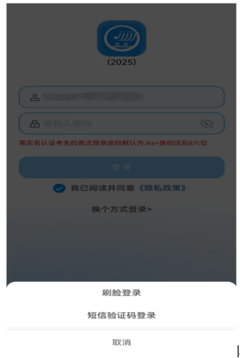 若考生遗忘登录密码,可通过“贵州招考”移动端APP修改密码。打开“贵州招考”移动端APP后,输入证件号码,点击“换个方式登录”,选择“刷脸登录”(若已经绑定手机号,可选择“短信验证码”登录)。