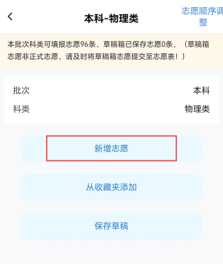 考生填报志愿时须先在“草稿箱”中编辑志愿草稿。
