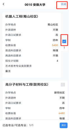 考生在计划查询过程中,可将感兴趣的专业进行收藏。