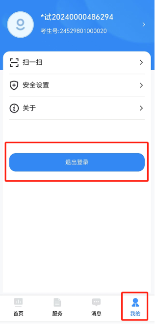 考生志愿填报完成后,点击“我的”—>“退出登录”以及关闭填报页面,以确保志愿信息安全。