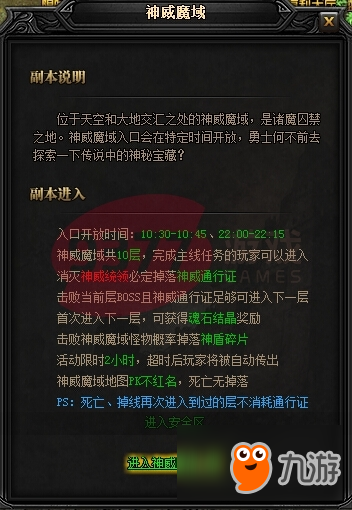 夺取钥匙前往神威魔域,击杀BOSS开启神秘宝藏。在9377蓝月传奇网页游戏中,每到不同的时间都有各式活动。玩家在参加活动的过程中,既能提升角色属性还能有意外收获。接下来小编就来做个蓝月传奇神威魔域如何玩的介绍。 每日的10:30-10:45、22:00-22:15这两段时间是神威魔域入口开启的时间,玩家在15分钟内进入地图后开口会关闭,未进入的玩家很可惜地错过了这次活动机会。但是已经进入神威魔域...