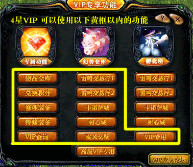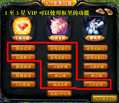根据VIP主要功能进行分类,大致可以分为1--3星VIP、4星VIP、5--6星VIP三个大类。以下是目前的一些功能: