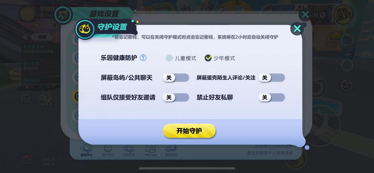从本次测评结果来看,网易旗下《蛋仔派对》已在游戏流程内实装专门面向未成年人的游戏模式——“宝宝蛋守护模式”。在本模式下,可以设置禁止公屏聊天、禁止陌生人组队等功能,防止陌生人向未成年人传递有害信息。