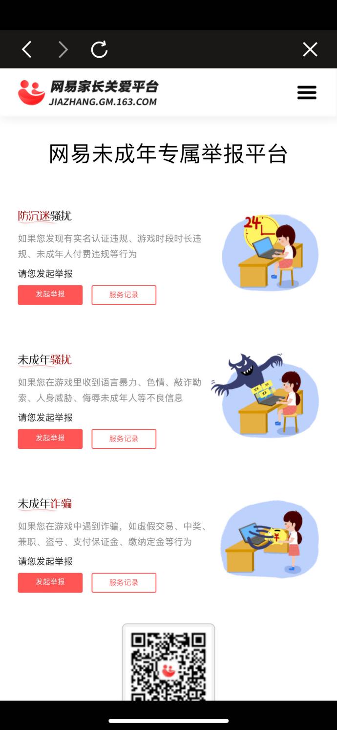 (图说:网易未成年人专属举报平台)