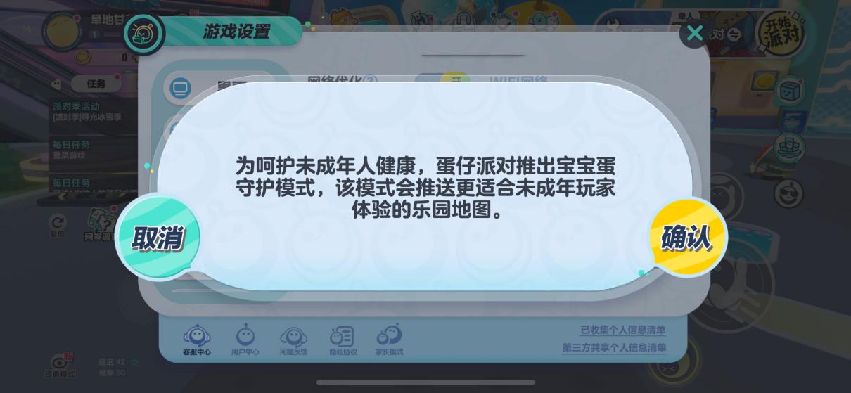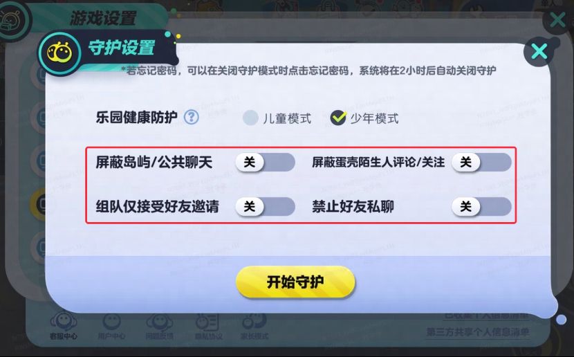 (图说:《蛋仔派对》守护设置中有系列网络防欺凌功能。)