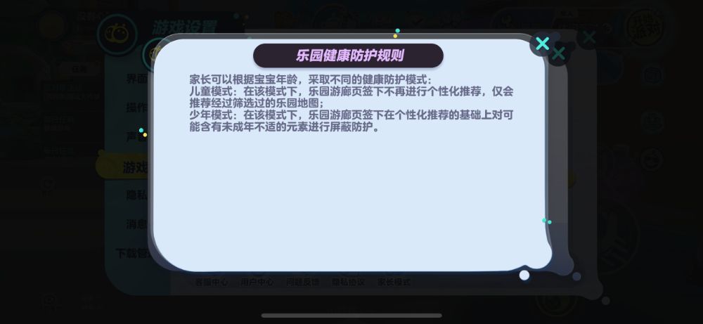 (图说:“乐园健康防护”模式下,UGC功能“乐园”中内容有所筛选)