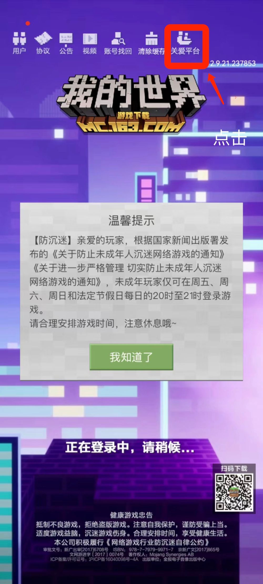 从测评结果来看,网易《蛋仔派对》《我的世界》登录界面直接显示了“家长关爱平台”/“关爱平台”入口。