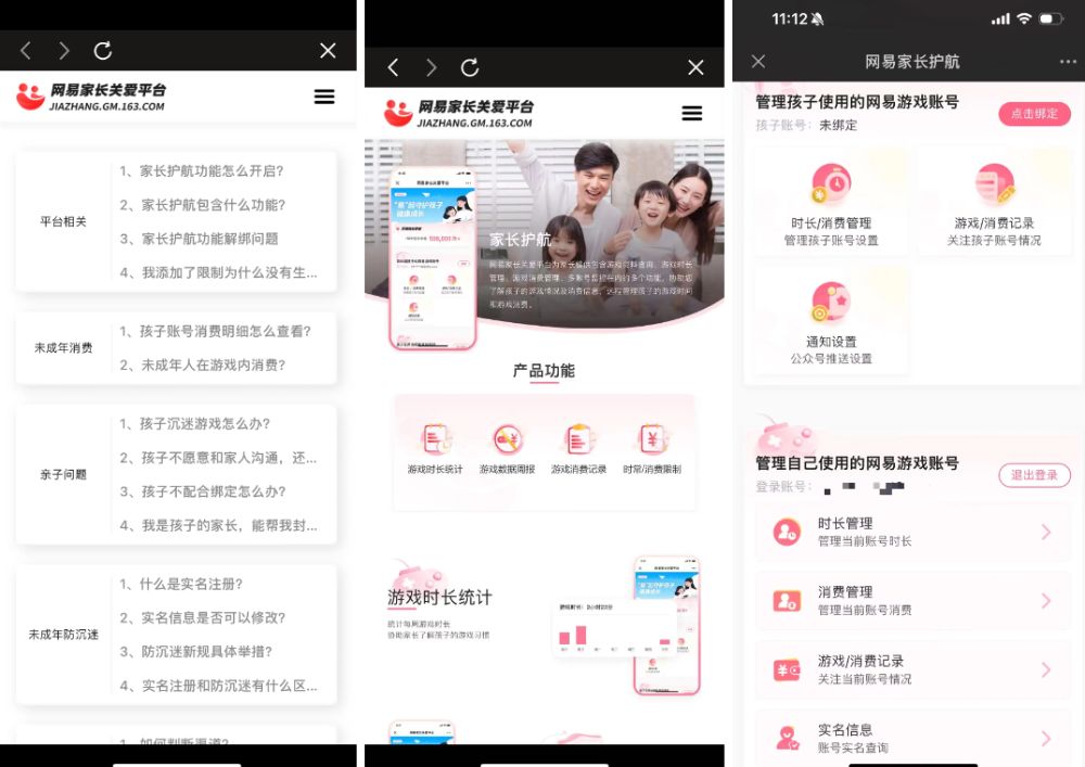 (图说:网易家长关爱平台页面、“网易家长护航”微信页面)