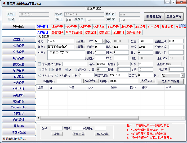 此工具由皇冠本人亲自编写且测试,蜀门私服gs去除了所有授权,无毒无后门,大家放心使用,工具功能齐全,永久免费使用