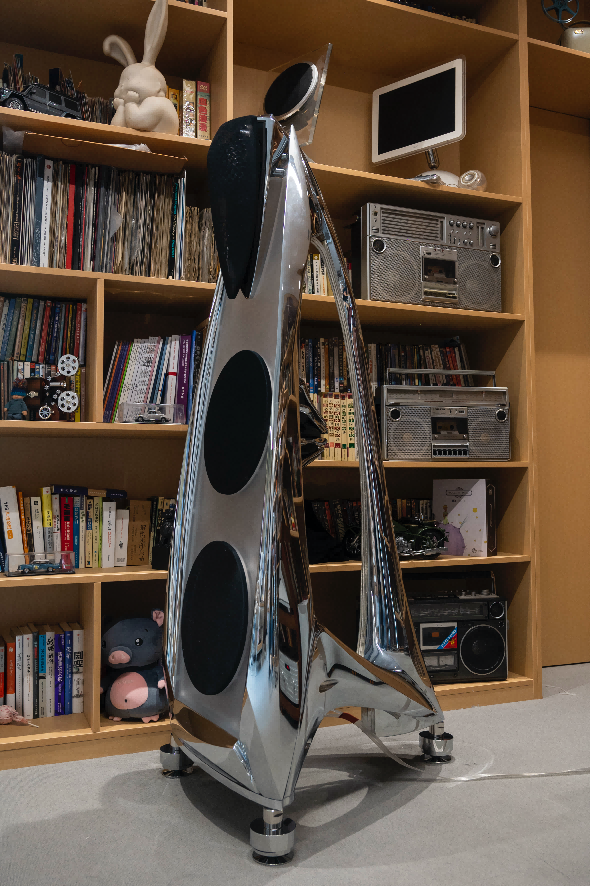 (这款音箱是曾先生多年前花了数百万开模费铝合金铸造箱体,也只做了一对,没有批量生产)