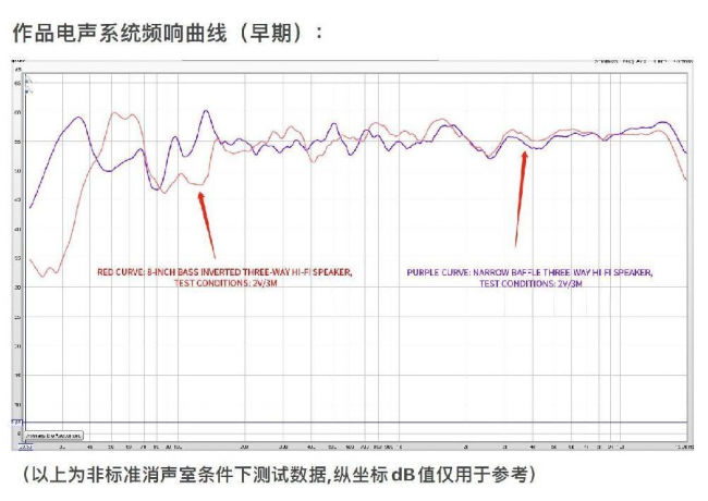 中高频的表现从听感上我与赖老师的看法一致,大约在 120 Hz 部分略有凸起,500Hz 左右的中频可以再丰满一些,当然,这与这对落地式小障板音箱的摆放环境有关系,曾德钧先生是放在自己的办公室聆听,虽然箱子后墙与左右两边有陈列柜摆放了各种各样的收音机样品可以做声音扩散,但整体的听音环境略显硬调,中高频的调整以后还有空间,同时得知曾先生公司刚迁入新环境,后续他将优化聆听空间的布置,想必到时会更加惊艳。
