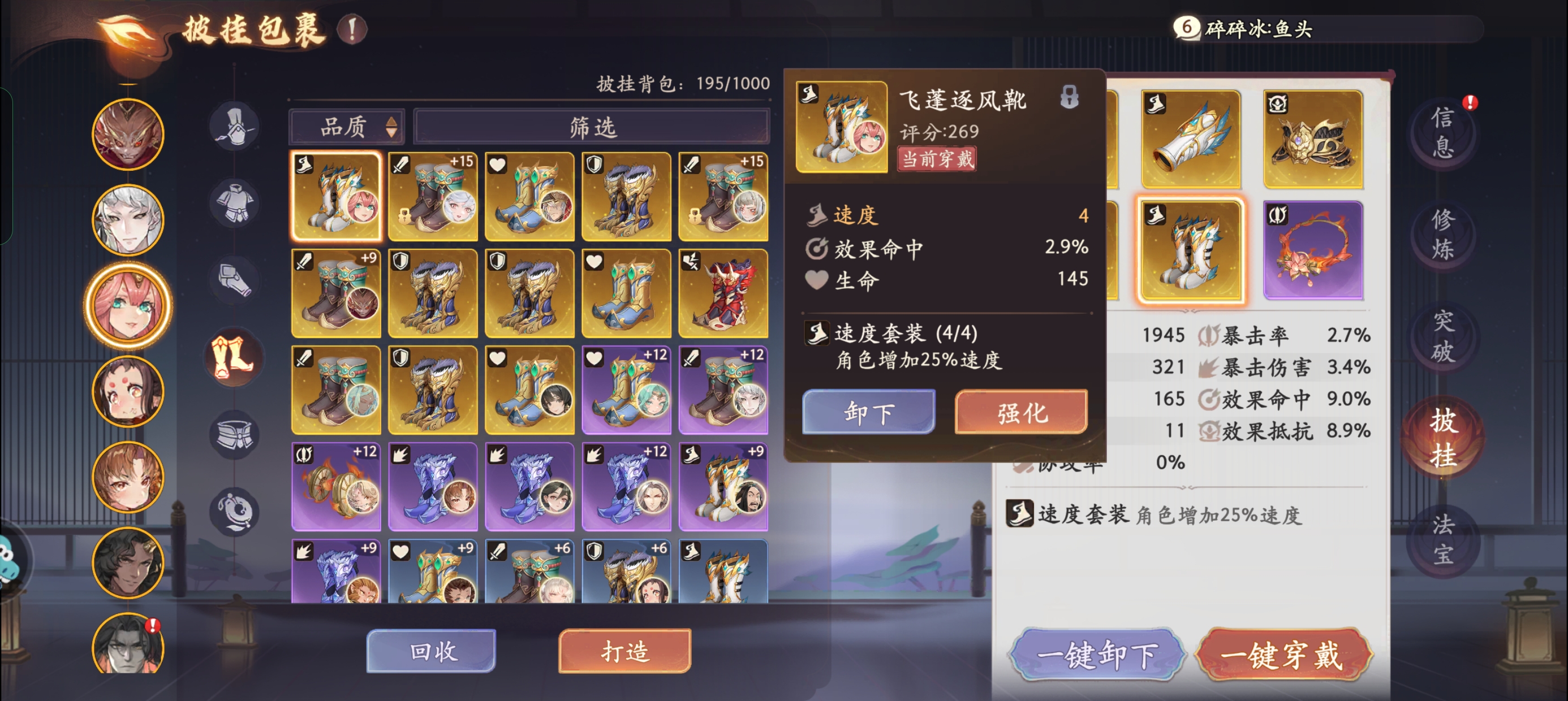 除了速度以外,优先选择百分百比属性加成:速度>攻击>爆伤>生命。