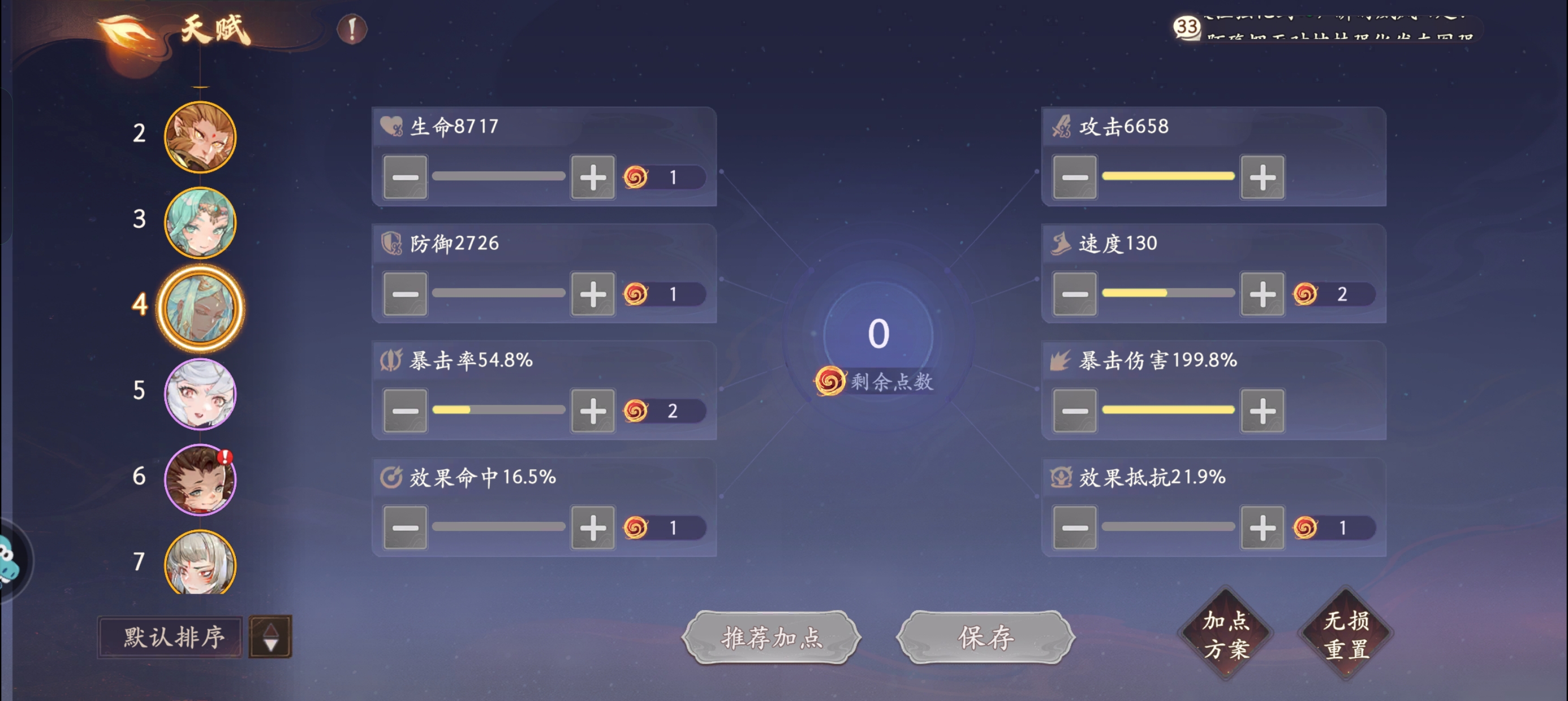 如果阵容上有哪吒,暴击点到50%就行,剩下的哪吒可以提供50%的暴击加成,可节省天赋点。