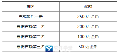世界BOSS身上携带着惊人的财富,只要前往征伐,就可以获得大量的金币奖励!伤害总额前3名以及完成最后一击的神选者将能获得令人惊羡的海量金币。