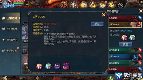 世界Boss身上都藏有众多的宝物及财富,只要前往征伐,人人都有奖可分!