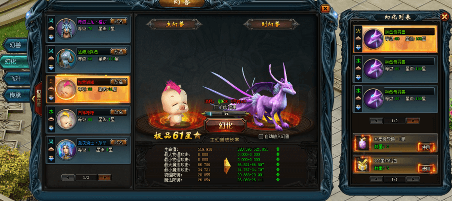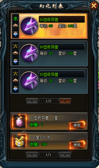 幻化列表:显示符合当前主幻兽要求的所有副幻兽,当您该列表为空时,请仔细检查您的副幻兽要求哦。