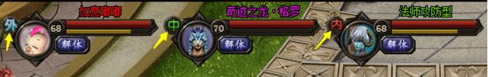 系统会根据与您合体的各只幻兽防御能力高低,自动排列出一个最佳的防御模式。即:防御最高的幻兽守护在您的最外层,并在它的头像上方用图标“外”来标识;防御最低的幻兽守护在最内层,在它的头像用图标“内”来标识;其他防御能力介于中间的幻兽呢,就将守护在中间层,在它的头像用图标“中”来标识。