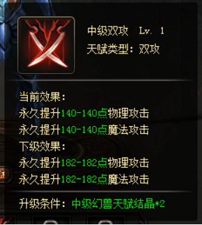 等级:显示该天赋目前的等级 ,天赋等级越高伤害越高。天赋等级通过获得对应等级的天赋结晶来提升。