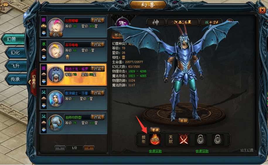 替换按钮即可。而幻兽技能书可通过商城-礼券商城购买或者BOSS掉落获得;